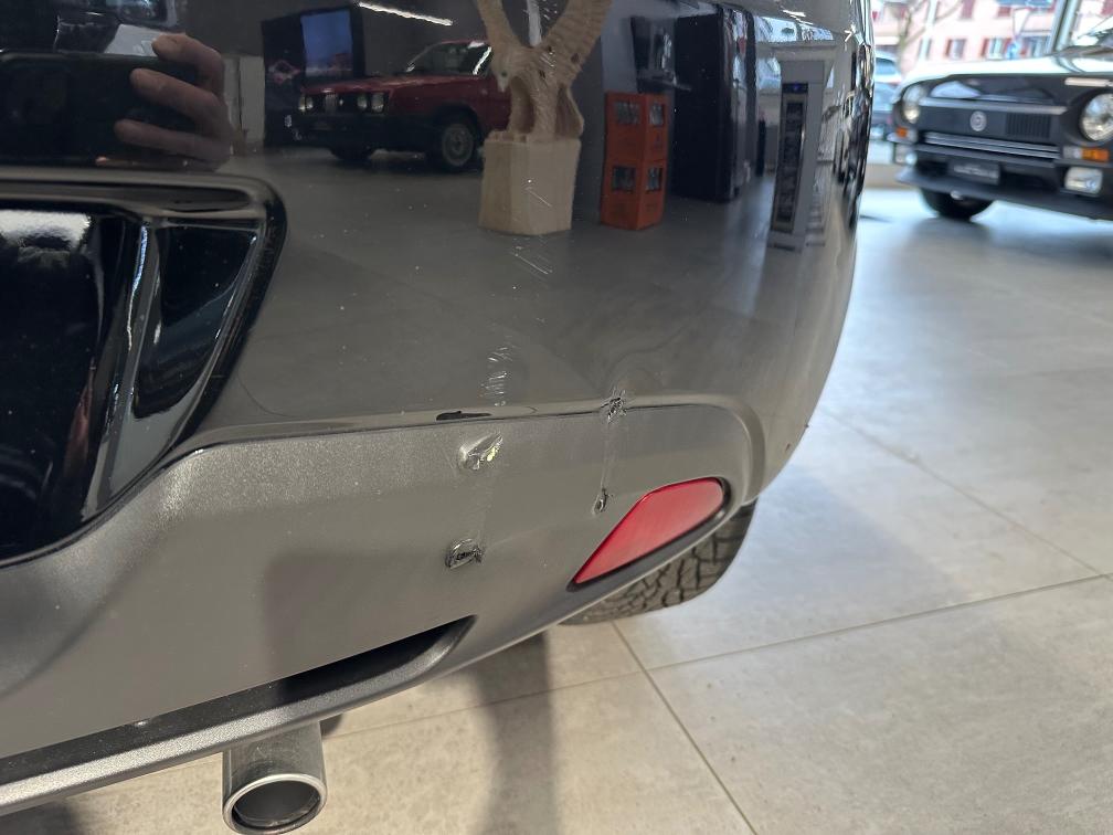 Stossfänger hinten beschädigt (siehe Foto), Schweller links Rost, Bremsleitungen zu ersetzen, Wasserkühler leicht undicht, Scheinwerfer matt (polieren)