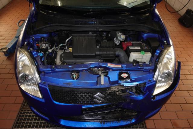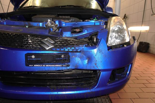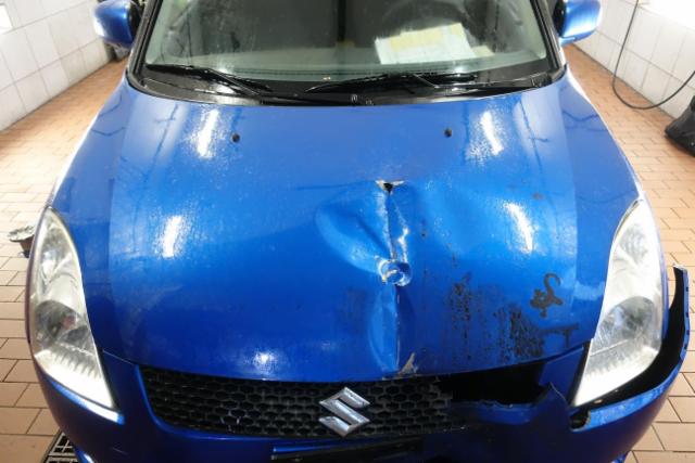 Front eingedrückt. Motorhaube eingedrückt. Frontblech/Maskenblech eingedrückt.