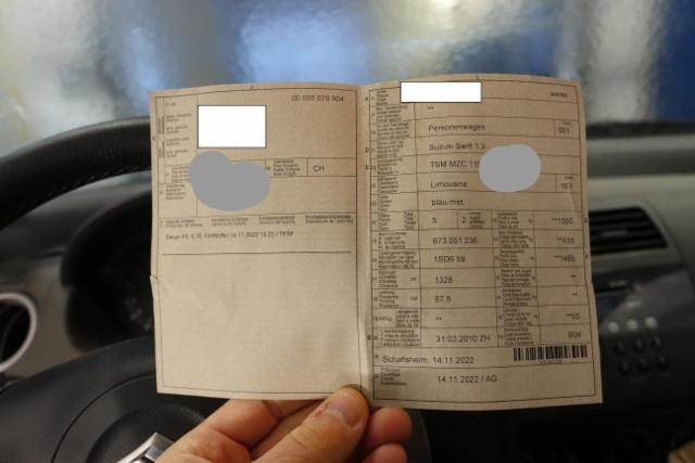 Fahrzeugdokumente vorhanden.