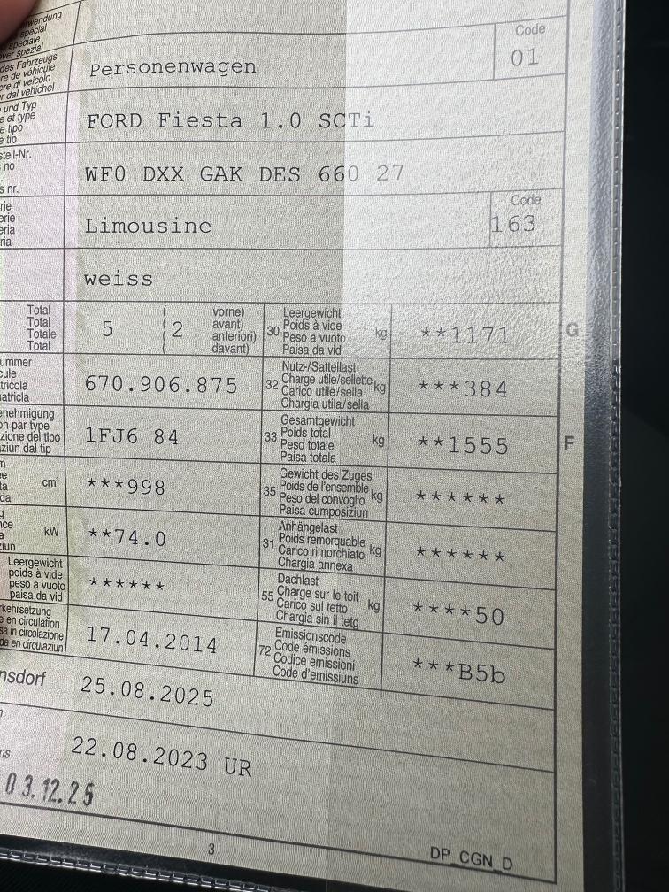 Hiermit bieten wir diesen Ford Fiesta 1.0 Scti an. Fahrzeug ist noch im Kundenbesitz. Fahrzeug wurde nicht geprüft, da MFK frisch ist. Folgende Mängel sind bekannt: - Kratzer an Stossstange vorne siehe Bild - Diverse kleinere Kratzer und Steinschläge - Service im April fällig - Innenraum schmutzig.