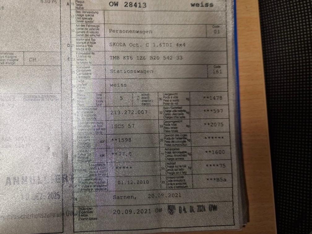 Zum Verkauf steht ein Škoda Octavia 1.6 TDI 4x4, Jahrgang 12/2010, Diesel, manuell, Allradantrieb. Wichtige Informationen: • Karosserie: ca. 332’000 km • Austauschmotor: im Jahr 2021 ersetzt – Laufleistung des Motors bei Einbau: ca. 170’000 km – Seither gefahren: ca. 30’000–40’000 km • Neue Kupplung 2021 • Neue Einspritzdüsen 2021 • Neuer Klimakompressor 2021 • Bremsen relativ neu • Anhängervorrichtung vorhanden ALLE RECHNUNGEN VOM KUNDEN VORHANDEN! Zustand: • Motor und Getriebe laufen einwandfrei • Motorlampe leuchtet (Hinweis: Fahrzeug fährt normal) • Alters- und laufleistungsbedingte Gebrauchspuren vorhanden Nur 1 Schlüssel Ein praktischer, robuster 4x4-Kombi, ideal als Winterauto, Zugfahrzeug oder für den Alltag. Das angebotene Fahrzeug befindet sich in gebrauchtem Zustand. Das Fahrzeug wurde keinem Test unterzogen! Der Käufer überzeugt sich vorgängig selbst vom Zustand des Fahrzeuges. Jede Gewährleistung wird wegbedungen, insbesondere sind Wandelung und Minderung ausgeschlossen. Eine Garantie wird nicht gewährt.