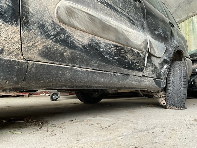 Hinterachse links beschädigt.