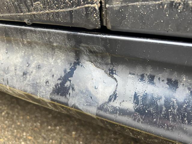 Linke Seite beschädigt. Schweller links ist eingedrückt. Tür vorne links ist eingedrückt. Tür hinten links ist eingedrückt.
