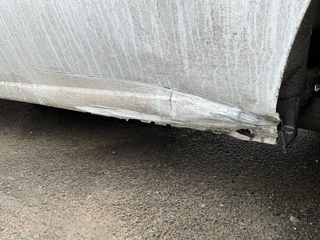 Aufhängungsteile vorne links beschädigt. Hinterachse rechts beschädigt. Risiko Lenkung.
