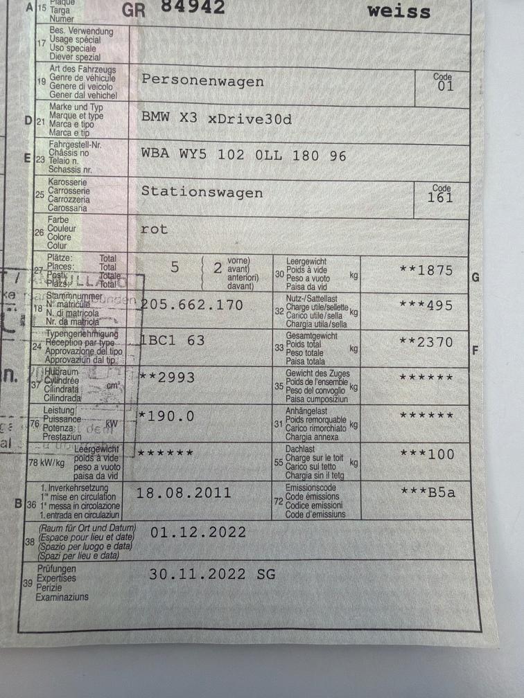 Gepflegter X3 3.0 Diesel . Robuster 6 Zylinder frisch ab MFK 1.2026 , neue Bremsen, Querlenker , Sommerräder, Servicegepflegt, kleine Delle Seitenwand li. ohne Lackschaden, Am Fahrzeug wurde kein Werkstatttest gemacht (für sichtbare oder nicht sichtbare Mängel wird nicht gehaftet). Wir haben nicht alle Funktionen vom Fahrzeug getestet und geprüft. Das Risiko liegt somit vollumfänglich beim Käufer. Nach erhalt des Zuschlags gibt es keine Nachverhandlung, auch wenn nicht deklarierte Mängel zum Vorschein kommen. Ab Platz ohne Garantie oder Gewährleistung, Wandelung und Minderung werden wegbedungen.