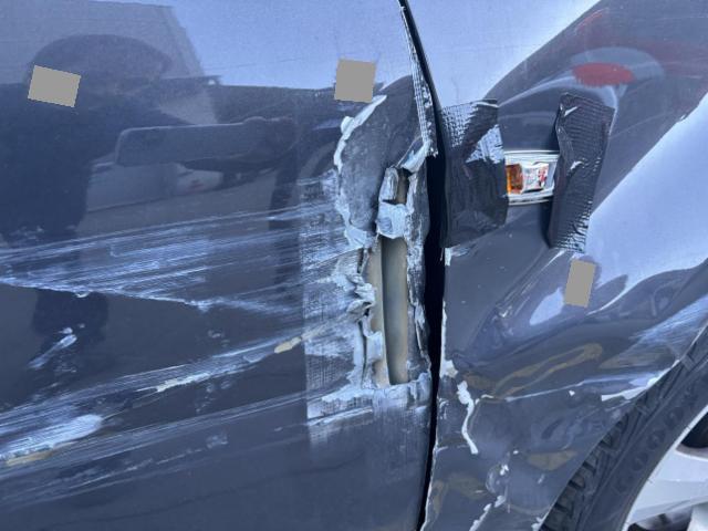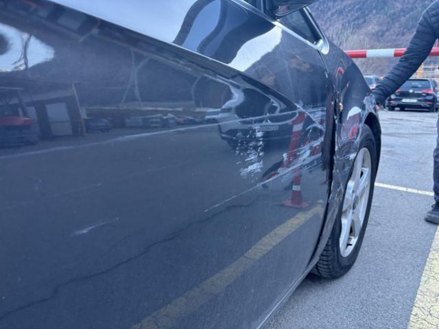 Rechte Seite beschädigt. Anstoss rechts im Bereich der B-Säule. Tür vorne rechts ist eingedrückt.
