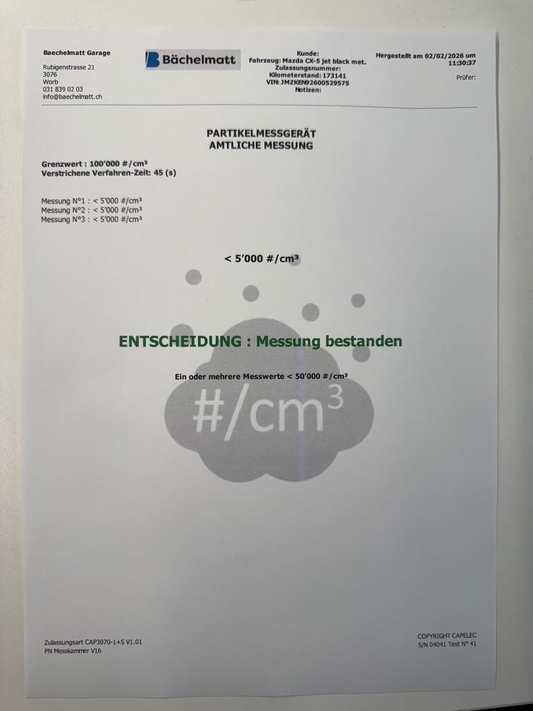 Dieselpartikelfiltertest wurde erfolgreich durchgeführt (Schriftlicher Ausdruck ist vorhanden).