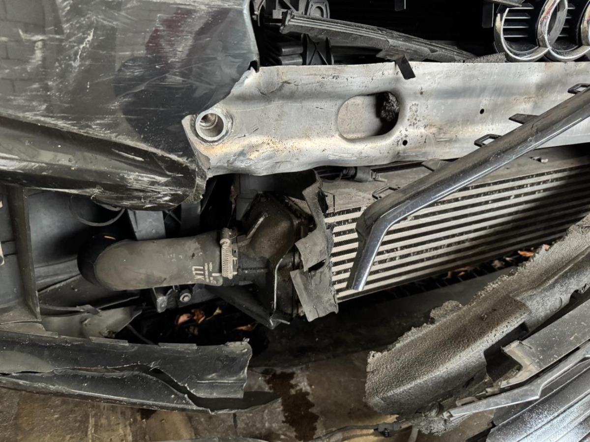Front, Front rechts, Gurtstraffer ausgelöst, Klimakühler, Kotflügel rechts, Kühler, Kühlgitter, Ladeluftkühler, Motorhaube, Rad vorne rechts, Scheinwerfer rechts, Schlossträger, Stosstange vorne
