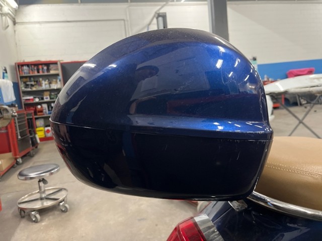 Top Case, Gepäckbrücke vorne chrom, Griffe Piaggio beige, Sitz beige (Blu energico & Verde amabile)