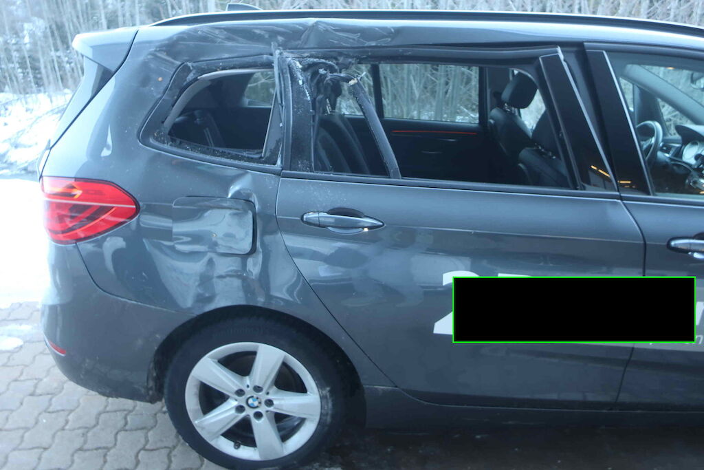 Türe hinten rechts, Seitenwand hinten rechts, Dachrahmen hinten rechts, Fenster eingeschlagen, Hinterachse beschädigt, Felge hinten rechts beschädigt. Leichte Delle im Dach Motor Getriebe Vorderachse Hinterachse Airbags ausgelöst: 0 unbekannt ( Abfallcode 16.01.04ak )