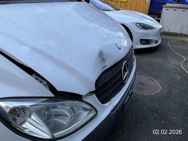 Beschreibung der Schäden: Front, Scheinwerfer, Stosstange. Motorhaube konnte nicht geöffnet werden ( Seilzug gerissen ). Fahrzeug unzerlegt begutachtet, Aufzählung nicht abschliessend, Risiko Innenteile.