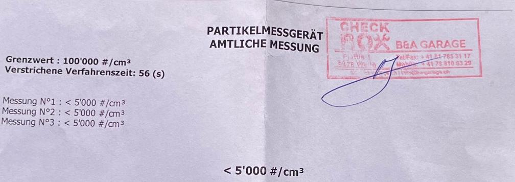 Dieselpartikelfiltertest wurde erfolgreich durchgeführt (Schriftlicher Ausdruck ist vorhanden).
