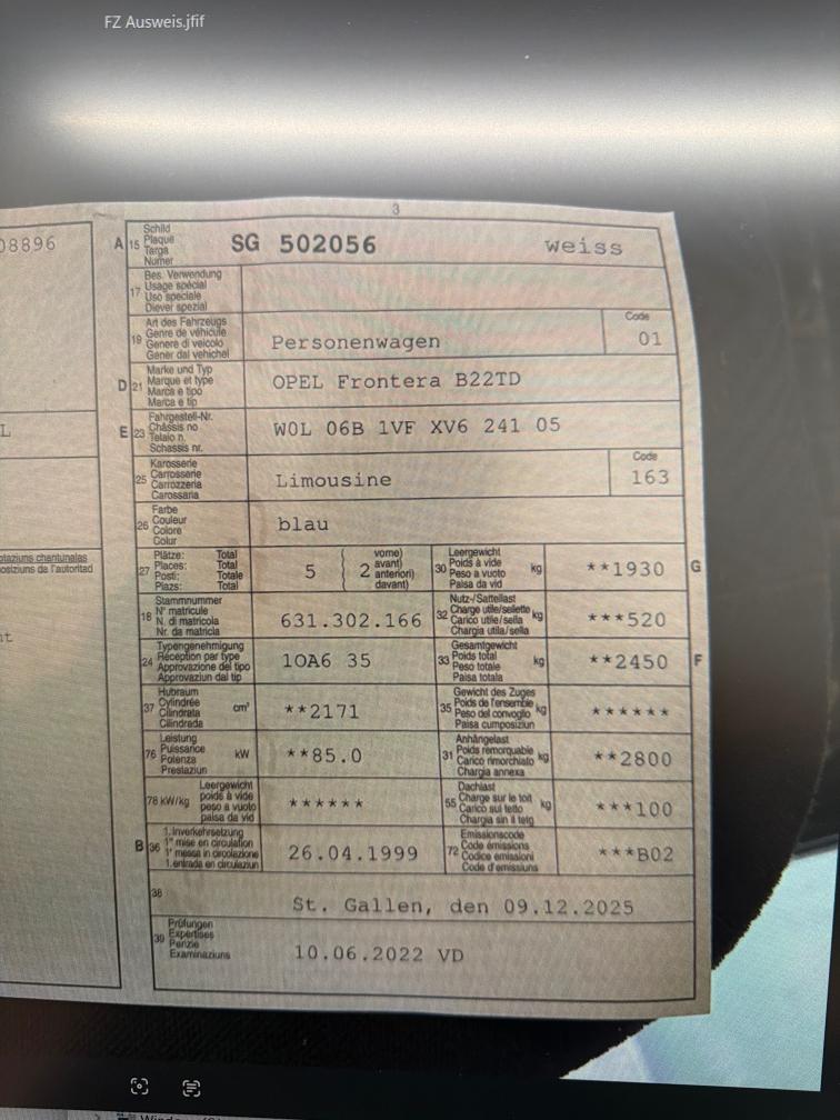 OPEL Frontera B22TD