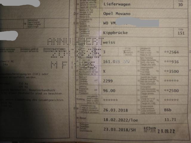 Opel Movano B Pritsche/Kipper/Koffer (2010->) Kipper 3,5t