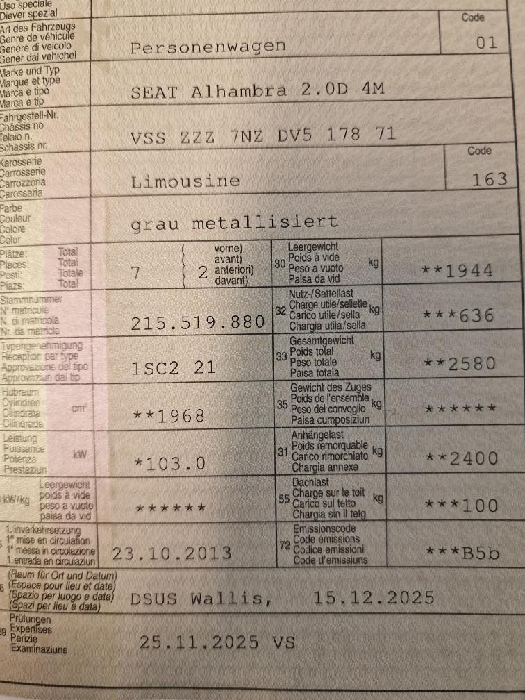 Jede Gewährleistung, soweit nach Gesetz möglich, wird wegbedungen, insbesondere sind Wandelung und Minderung ausgeschlossen. Details: - S-Reifen Frühling 2025 ersetzt (7mm) - W-Reifen Herbst 2025 ersetzt (7mm) - Stossdämpfer V., Federn V., Koppelstangen V. und Wasserpumpe am 01.2026 ersetzt (Beleg der SEAT-Vertragswerkstatt vorhanden) - Zustand des Fahrzeuges gemäss Fotos - Es wurde KEIN Werkstatttest durchgeführt