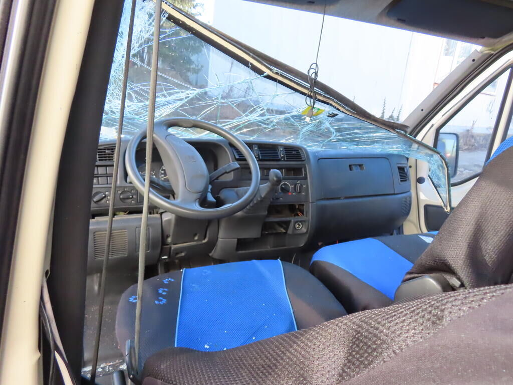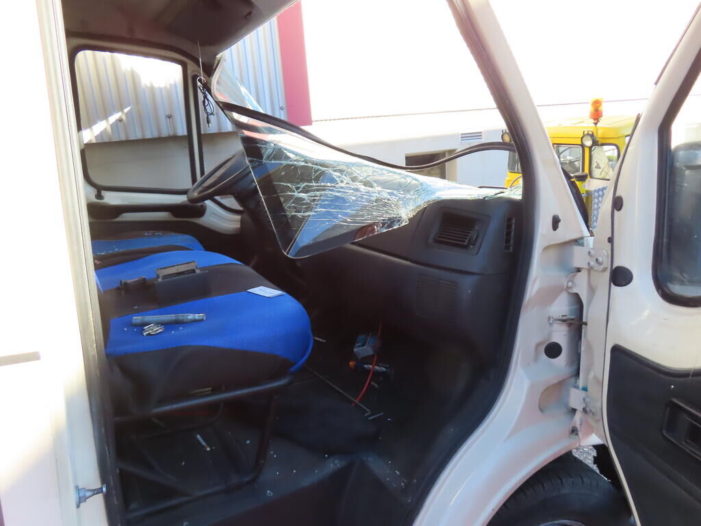 Bloc avant enfoncé Ailes portes et parois latérales gauche et droite enfoncée. Porte battantes arrière de chargement enfoncées. Renforts jupe et montants arrière enfoncés. Pavillon enfoncé. Eclairages cassés. Pare-brise et vitres latérales et portes brisées. Motor Getriebe Vorderachse Hinterachse Airbags ausgelöst: 0 unbekannt ( Abfallcode 16.01.04ak )
