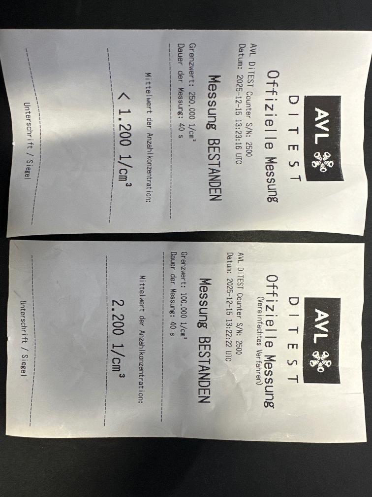 Dieselpartikelfiltertest wurde erfolgreich durchgeführt (Schriftlicher Ausdruck ist vorhanden).