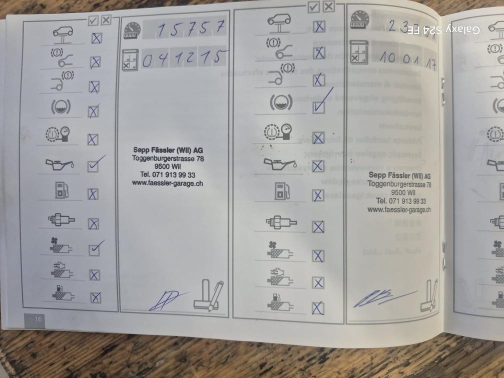 Das Fahrzeug wurde optisch und technisch nicht geprüft befindet sich jedoch in einem allg. guten zustand, div. gebrauchsspuren und Kratzer. Fahrzeughalter ist eine ältere Frau. Service und Instandhaltungen wurden regelmässig durchgeführt, 2 Schlüssel defekt aber vorhanden, Winterreifen 2021 / Sommerreifen 2020 Profil i.O, kürzlich wurde die Wasserpumpe ers., ohne Garantie und Gewährleistung