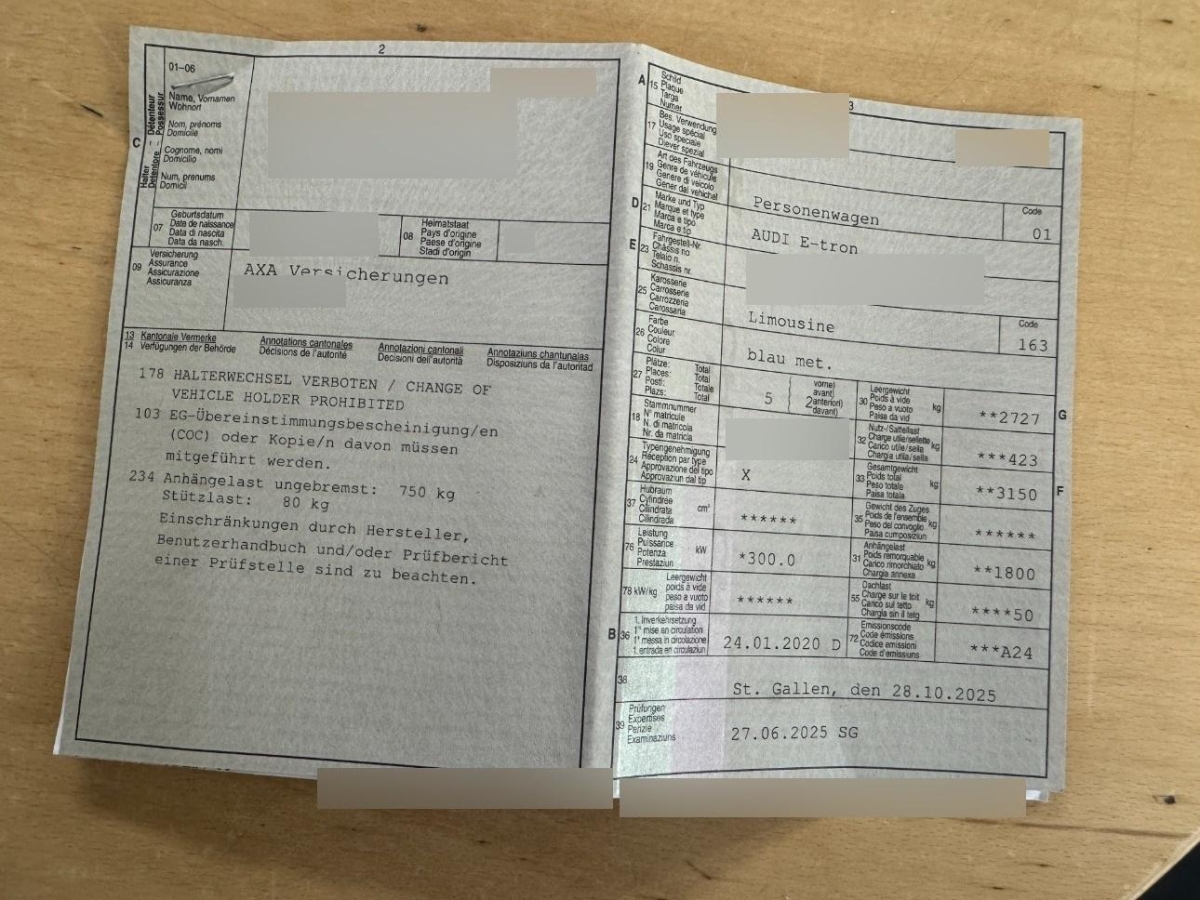 Die Vorderachse konnte nicht geprüft werdenDie (vom Fahrzeugexperten) ermittelten Reparaturkosten beziehen sich auf das versicherte Ereignis. Allfällige zusätzliche, nicht versicherte Schäden/Vorschäden, sind in den Reparaturkosten nicht enthalten. Die deklarierten Ausstattungsmerkmale können von der effektiven Ausstattung abweichen.AchtungBei einem Hochvoltsystem - Spannungsfreiheit prüfen. Sicherheitshinweise und Betriebsanleitungen des Herstellers konsultieren und befolgen.