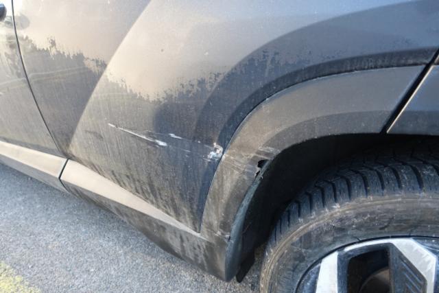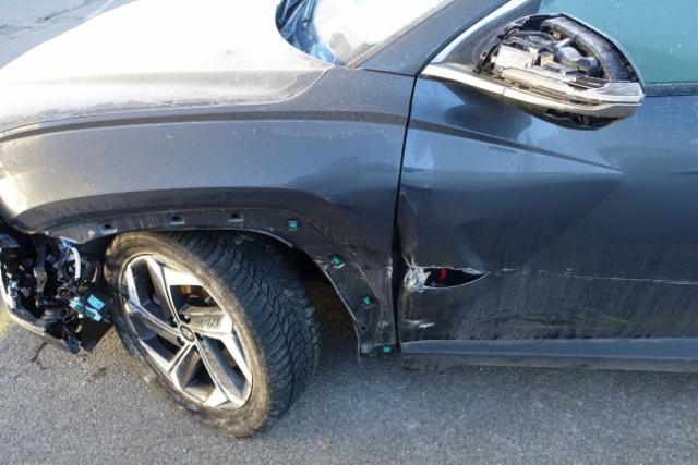 Aufhängungsteile vorne links beschädigt. Risiko Vorderachse. Risiko Hinterachse. Risiko Lenkung.