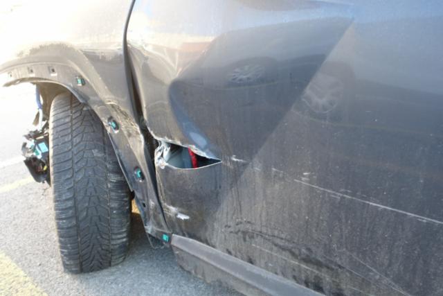 Linke Seite beschädigt. Tür vorne links ist eingedrückt. Tür hinten links ist eingedrückt.