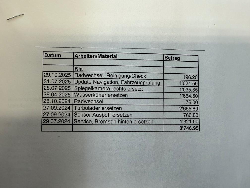 Es wurde kein Werkstatttest durchgeführt. Ab Platz, ohne Garantie. Wandelung und Minderung werden wegbedungen. Allradantrieb funktioniert nicht. (keine Diagnose gemacht) TOP-Ausstattung. Arbeiten welche in letzter Zeit ausgeführt wurden. 07/2024: Service, Bremse HA ers. 09/2024: Sensor Auspuff, Turbolader ers. 04/2025: Wasserkühler ers. 07/2025: Spiegelkamera rechts ers., Navi Up, MFK 02/2026: DPF-Messung bestanden.