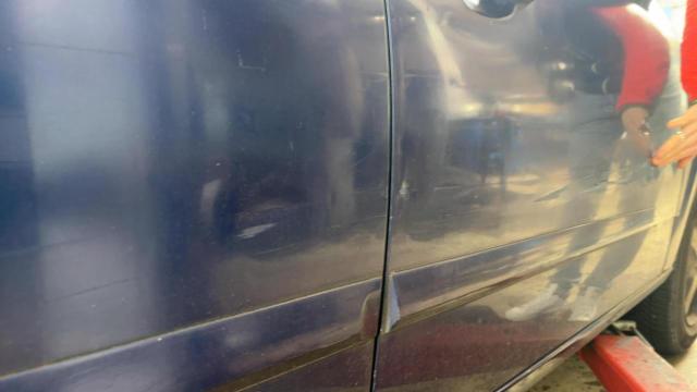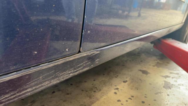 Rechte Seite beschädigt. Schweller rechts ist eingedrückt. Tür vorne rechts ist eingedrückt. Tür hinten rechts ist eingedrückt.