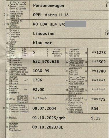 Fahrzeugdokumente vorhanden.