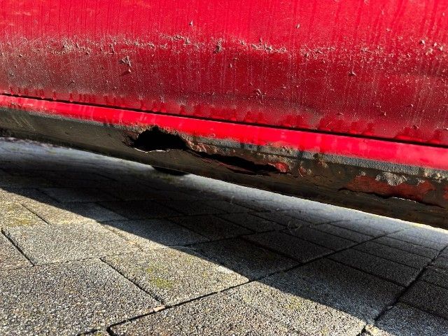 Diverse Lackschäden rund um das Fahrzeug. Diverse Roststellen, Schwelle links durchgerostet.