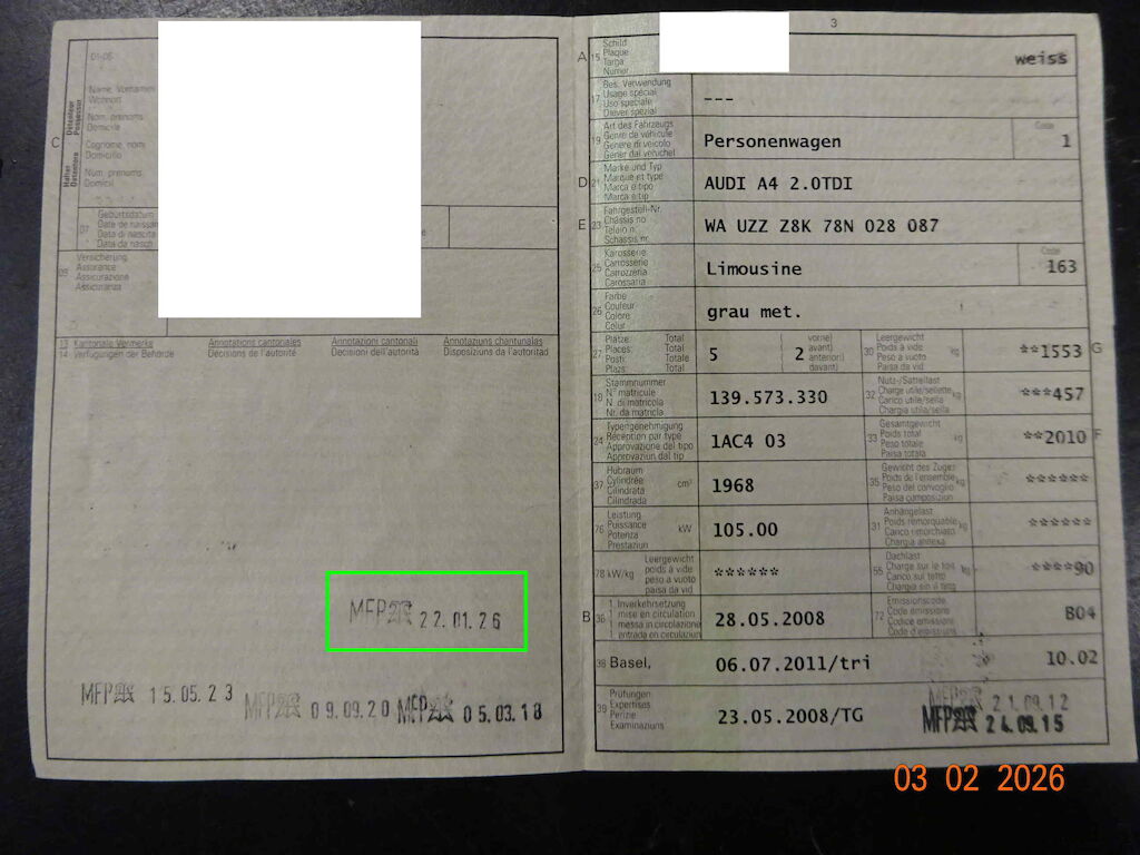 sehr gepfleger Allgemeinzustand1 Schlüssel beim Fzg.Zahnriemen mit Wasserpumpe bei 100'000km ersetztvor 2000 km wurdenAlternatorQuerlenker vl und vralle Türschlösser ersetzt