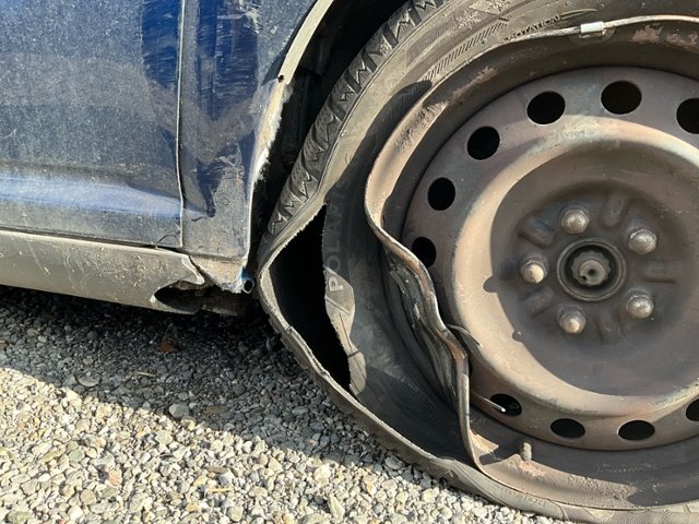Aufhängungsteile vorne rechts beschädigt. Risiko Vorderachse. Risiko Lenkung.