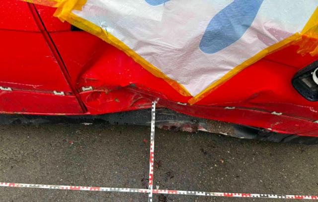 Fahrzeugvorbau nach rechts verschoben.
