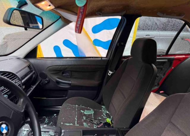 Türscheibe vorne rechts ist zerbrochen / beschädigt.