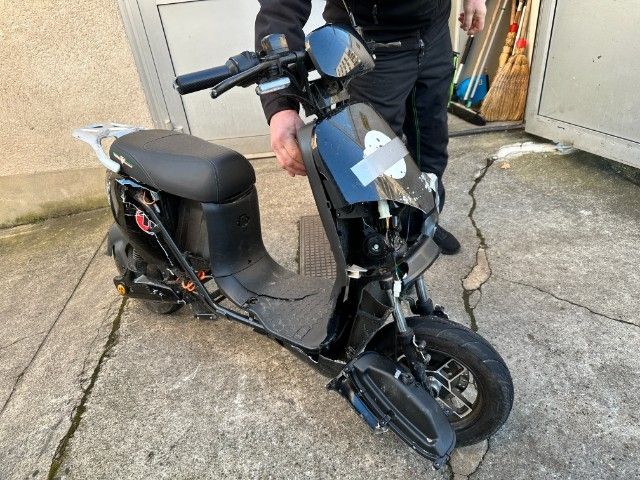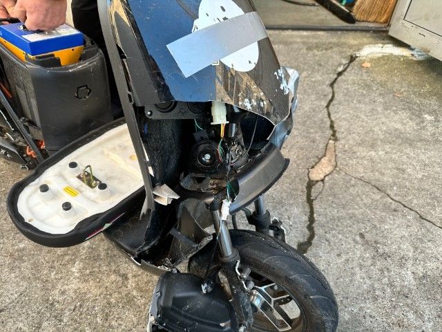 Schutzblech vorne defekt. Gabel beschädigt. Lenker verbogen.