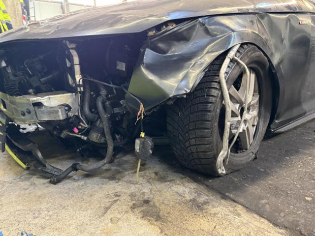 Linke Seite beschädigt. Anstoss links im Bereich der A-Säule. Bodengruppe links ist eingedrückt. Tür vorne links ist eingedrückt.