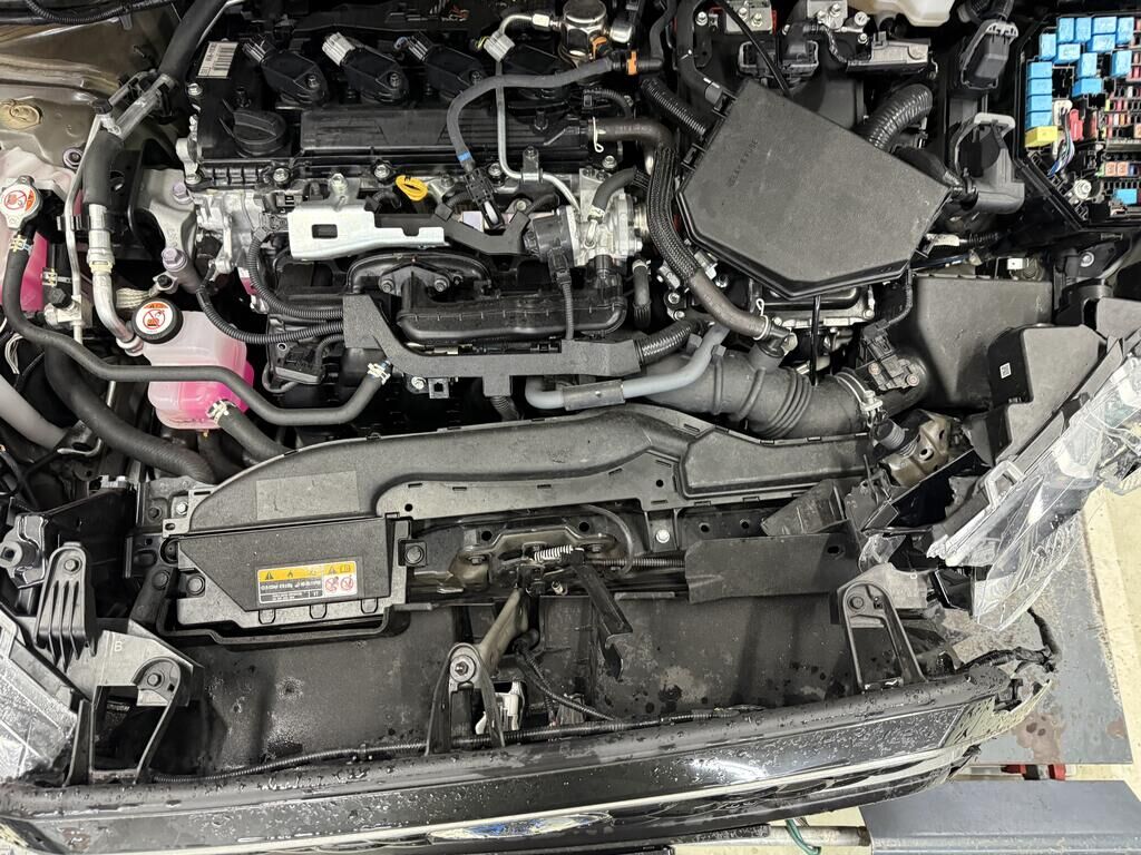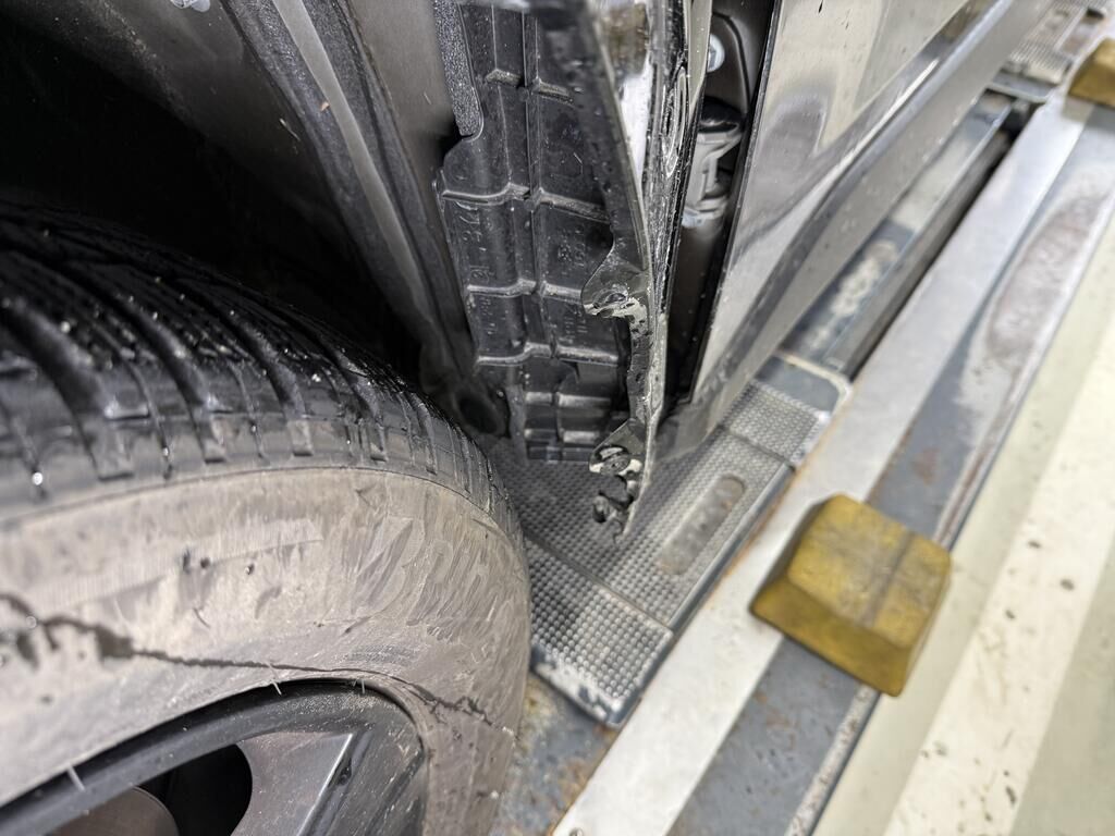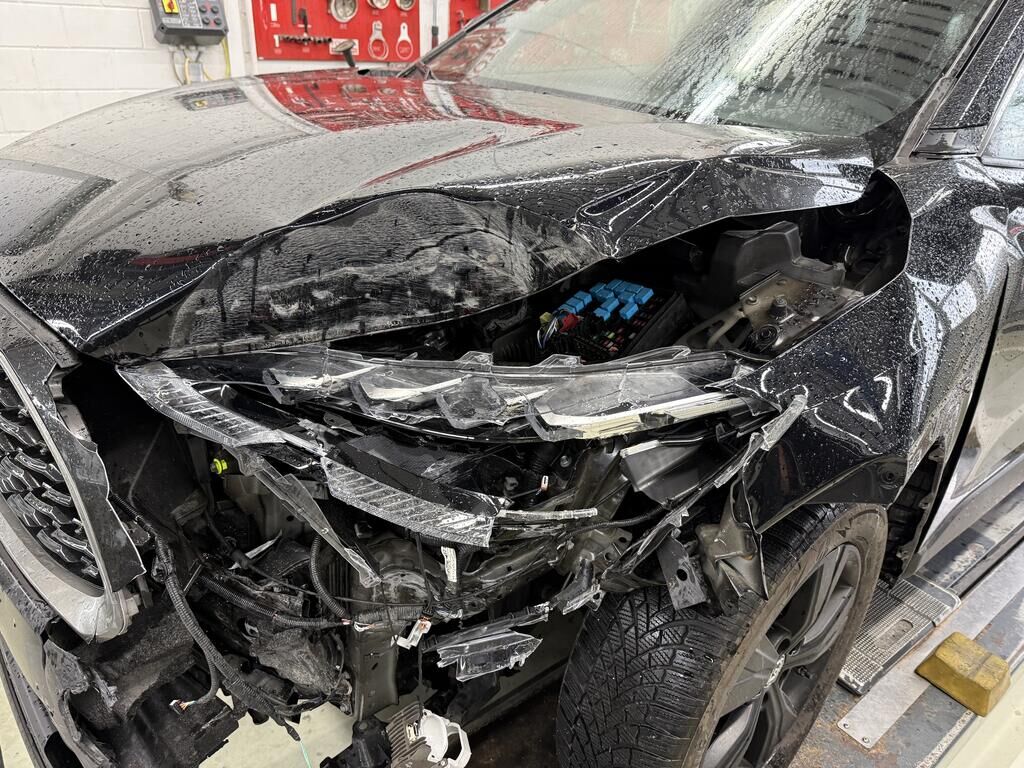 Anprall - Front links: - Scheinwerfer, Stossfänger inkl. Anbauteile gebrochen - Motorhaube und Kotflügel deformiert - Frontmaske, Radhaus und oberer Längsträger deformiert - Hauptlängsträger deformiert - Gesamte Front nach recht verschoben - Kühlerpaket beschädigt - Radaufhängung deformiert, Rad steht schräg und zu weit hinten, Antriebswelle rausgerissen - Vorderachsträger verschoben - Risiko: Getriebe! - Weitere Beschädigungen mögliche Motor Getriebe Vorderachse Hinterachse Airbags ausgelöst: 0 unbekannt ( Abfallcode 16.01.04ak )