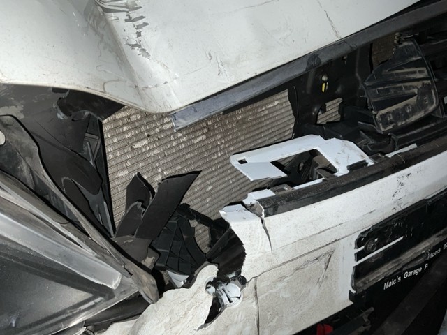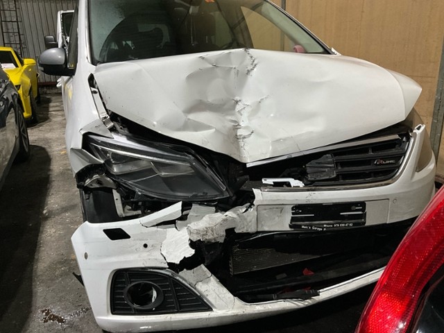 Front eingedrückt. Frontblech/Maskenblech eingedrückt. Längsträger vorne rechts gestaucht.