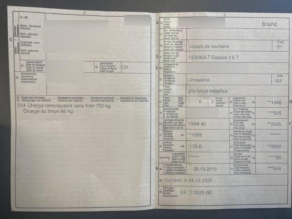 RENAULT Espace 2.0 T Swiss Ed., 170 PS