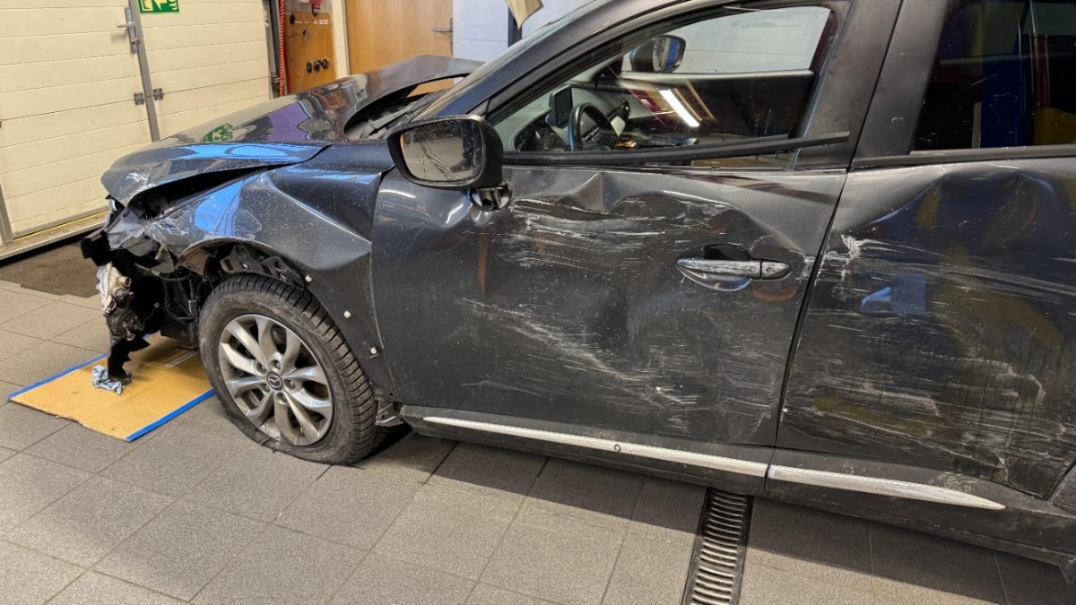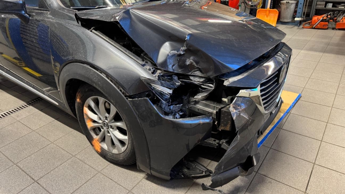 Aussenspiegel links, Federbein vorne links, Front, Front links, Front rechts, Frontblech, Klimakühler, Kotflügel links, Kotflügel rechts, Kühler, Kühlgitter, Lenkung, Motorhaube, Rad vorne links, Radaufhängung vorne links, Scheinwerfer links, Scheinwerfer rechts, Schlossträger, Schweller links, Seite links, Stosstange vorne, Türe hinten links, Türe vorne links, Vorderachse