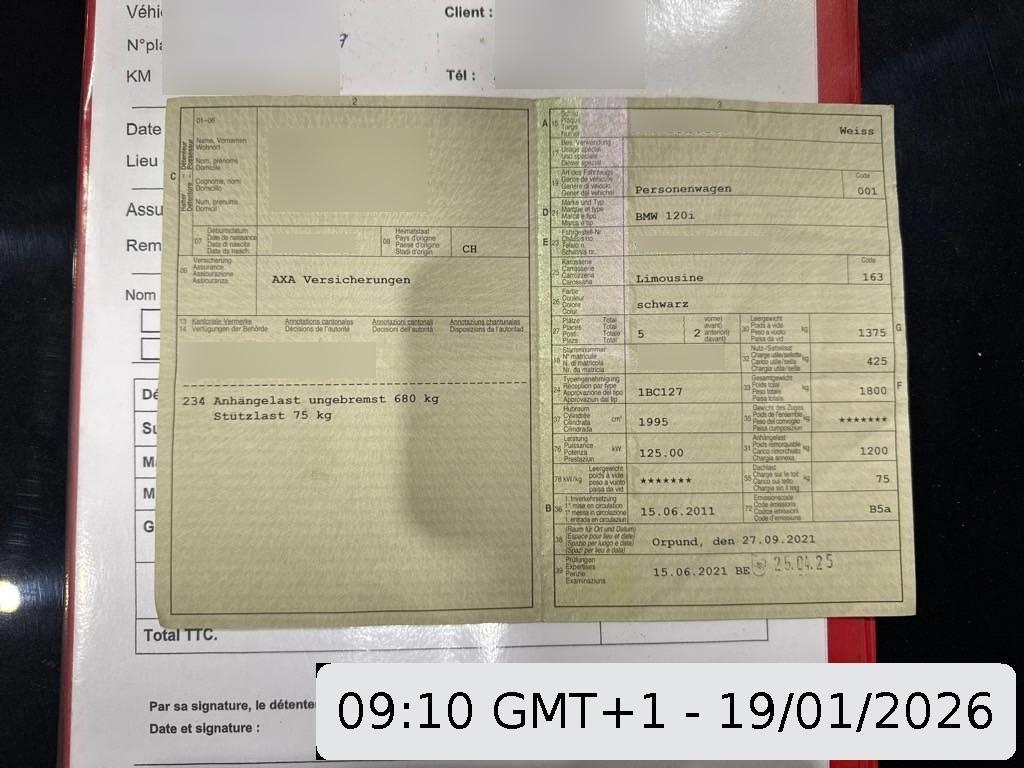 Make up-Spiegel rechts, Heckscheibenheizung, Kofferraumfernentriegelung, Bremsassistent (BAS), 3-Punkt-Sicherheitsgurte auf allen Plätzen, Skisack, Wegfahrsperre elektronisch, Window-Kopfairbags, Motor Start-/Stop-Anlage, Lenkung, elektrisch unterstützt, Bremsbelag-Verschleissanzeige, Digital Uhr, Tageskilometerzähler, 3 Kopfstützen hinten, Gurtstraffer vorne, Aussentemperaturanzeige, Assist: Cornering Brake Control (CBC), Verbandskasten, Abschliessbare Radschrauben, Aux-In Anschluss, Befestigungsösen im Laderaum, Dynamische Stabilitätskontrolle (DSC), Lenkrad: Lenkrad längs- und höhenverstellbar, Scheibenwischer vorne mit Intervall, Stossstangen und Aussenspiegel in Wagenfarbe, Gurtkontrolle, Zweiklanghorn, ISOFIX Kindersitzvorrichtung, Rücksitzlehne geteilt abklappbar, Anbauteile in Wagenfarbe, Blinkleuchten seitlich vorn weiss, Radzierblenden, Abblendlichtausschaltverzögerung 'Follow me home', Katalysator geregelt, Veloursfussmatten vorne und hinten, Radiovorbereitung, Antenne, Entstörung und 6 LS, Airbag: Airbag Fahrer und Beifahrer, Lichtwarnsummer, Einstiegsschienen, Lackierung: Uni-Lackierung, Vordersitze höhenverstellbar, Reifendruckverlust-Warnsystem, Stoff-Ausstattung, Antiblockiersystem (ABS), Innenlicht-Abschaltverzögerung, Halogenscheinwerfer, Durchladeklappe, Tagfahrlicht, Nichtraucherausführung, Bordcomputer, Leuchtweitenregulierung elektrisch, Aussenspiegel rechts und links elektrisch verstellbar, Grün getönte Scheiben, Weisse Blinkleuchten, Türgriffe in Wagenfarbe, Radio BMW Business CD, Heckscheiben-Wisch-/Waschanlage, Nebelscheinwerfer, Drittes Bremslicht, 12-Volt-Steckdose vorne, Licht: Nebelschlussleuchte, Elektrische Fensterheber vorne + hinten, Check-Control-System, Wartungsintervall-Anzeige, iDrive-System, Oelstandsanzeige, Schutzleisten für Stossstangen vorne und hinten, Dekor: Interieurleisten in Satinsilber matt, Stahlräder, Getriebe: 6-Gang-Getriebe, Seitenairbags, Make up-Spiegel links, Zentralverriegelung mit Fernbedienung, Beleuchtetes Handschuhfach, Automatische Stabilitäts- und Traktions- kontrolle, Kombi-Instrumente mit Chromzierringen, Seitenaufprall-Schutzsystem, Drehzahlmesser, BMW Mobility System