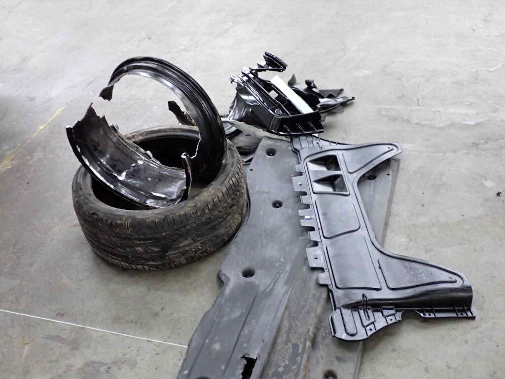 Parte meccanica ruote destra e fianco destro danneggiato Motor Getriebe Vorderachse Hinterachse Airbags ausgelöst: 0 unbekannt ( Abfallcode 16.01.04ak )