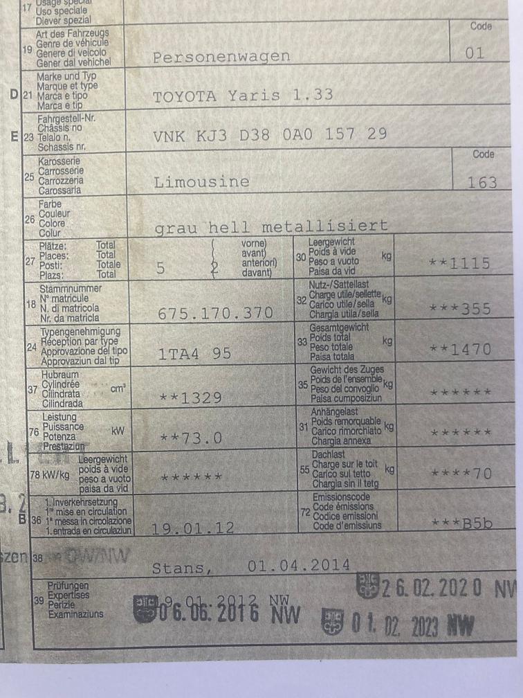 Seitenschaden rechts gem. Fotos! Div. Kratzer gem. Fotos!! FZ hat leichten Hagelschaden! Motorhaube/Frontscheibe/Front Steinschläge! Bereifung i.O.! Weitere Informationen sind nicht vorhanden. Das Fahrzeug wurde von uns nicht mechanisch geprüft! Verkauf erfolgt ab Platz ohne Garantie und Nachwährschaft, sowie Wandelung und Minderung ausgeschlossen. Fahrzeug wurde nicht mechanisch geprüft! Schäden und Zustand siehe Fotos. Es werden keine Nachverhandlungen geführt, auch für Schäden die nicht sichtbar sind oder nicht deklariert wurden. Fahrzeug kann besichtigt werden, somit liegt das Risiko vollumfänglich beim Käufer. Fahrzeugabholung innerhalb von drei Arbeitstagen nach Erhalt des Zuschlages. Danach wird Fr. 50.-/Tag verrechnet!