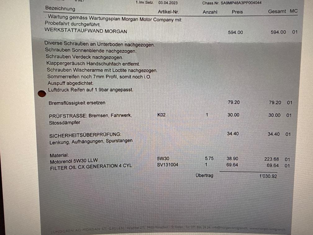 Der Morgan ist in sehr gutem Zustand. Keine Krätzer oder Dellen, sieht wie neu aus. Alle Services gemacht jedes Jahr.$ Unsere Fahrzeuge wurden keiner Prüfung unterzogen. Fahrzeugkauf auf eigenes Risiko ab Platz ohne Nachwährschaft. Das Gewährleisten für Sachmängel wird weggegangen. Fahrzeuglieferung, Fahrzeugzustand und Ausstattung gemäss Bildern.