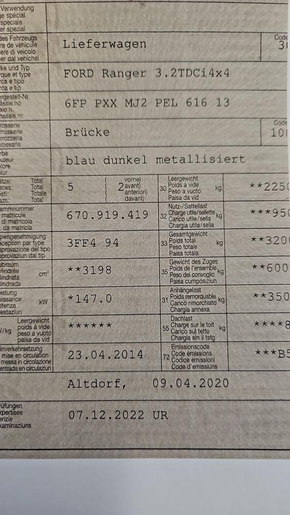 - Motor wurde mit 209251km am 02.2022 ersetzt (Original Ford Ersatzteil) - MFK Mängel bitte beachten: DPF defekt; Schlusslicht links; Aupsuffanlage Felxrohr lose; Federblatt hinhten rechts gebrochen; Lichteinstellung