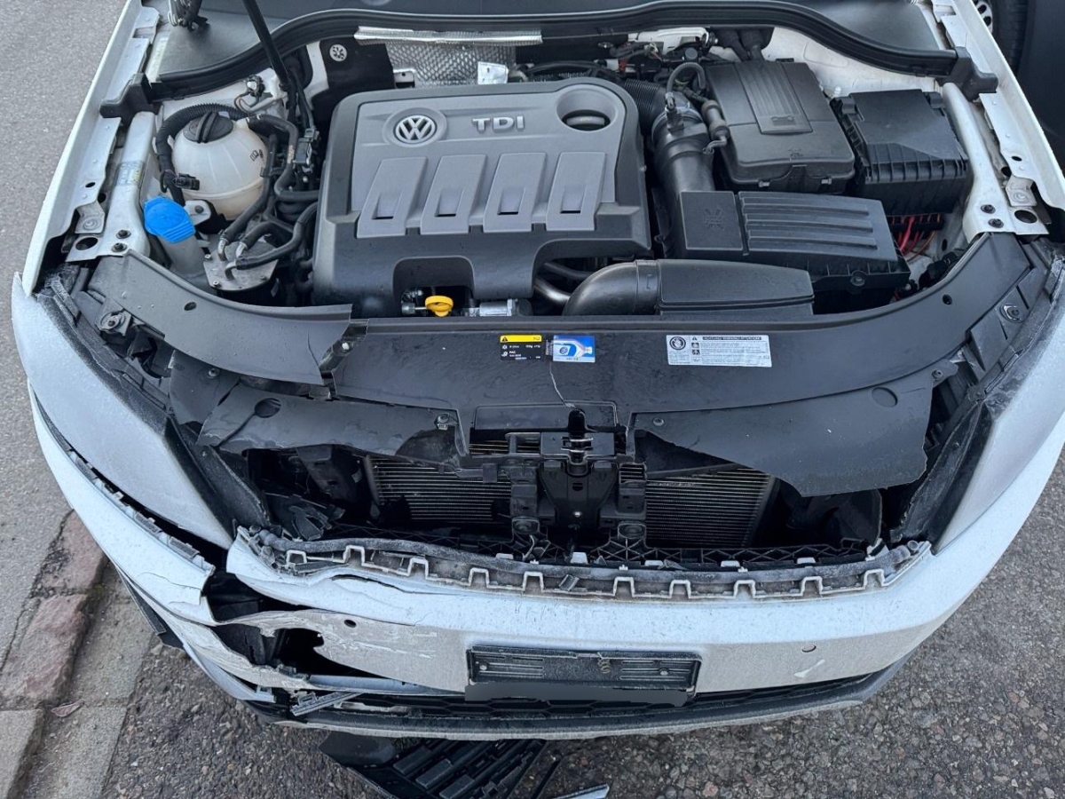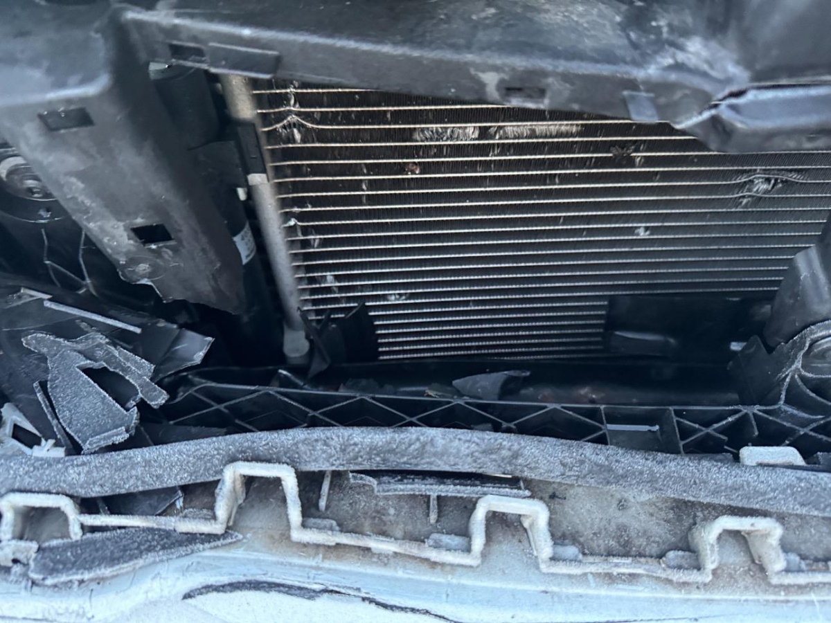 Airbag ausgelöst, Diverse Anbauteile, Front, Gurtstraffer ausgelöst, Kühler, Kühlgitter, Ladeluftkühler, Motorhaube, Scheinwerfer rechts, Schlossträger, Stosstange vorne