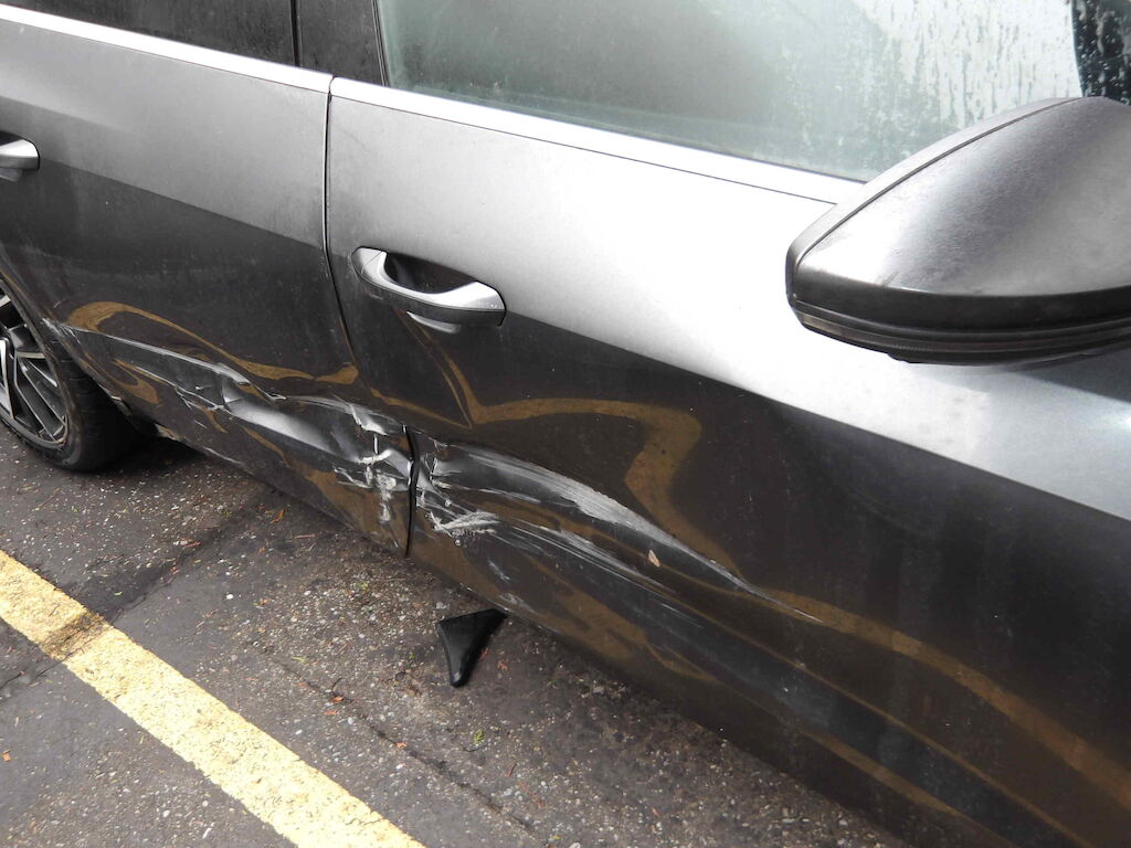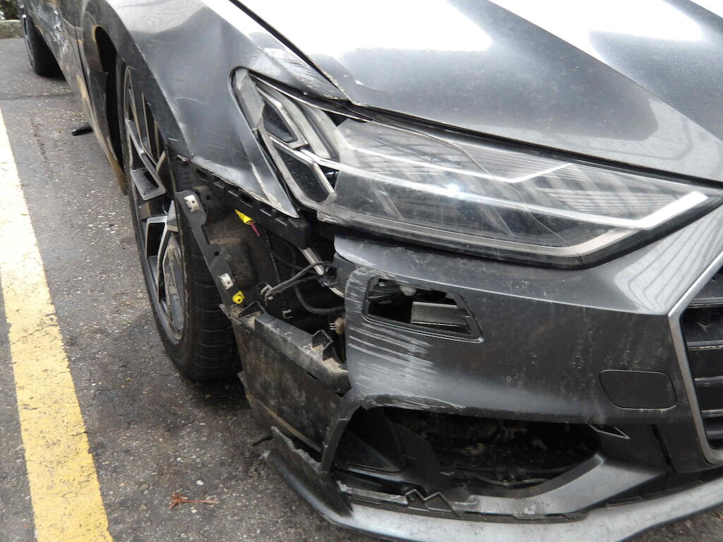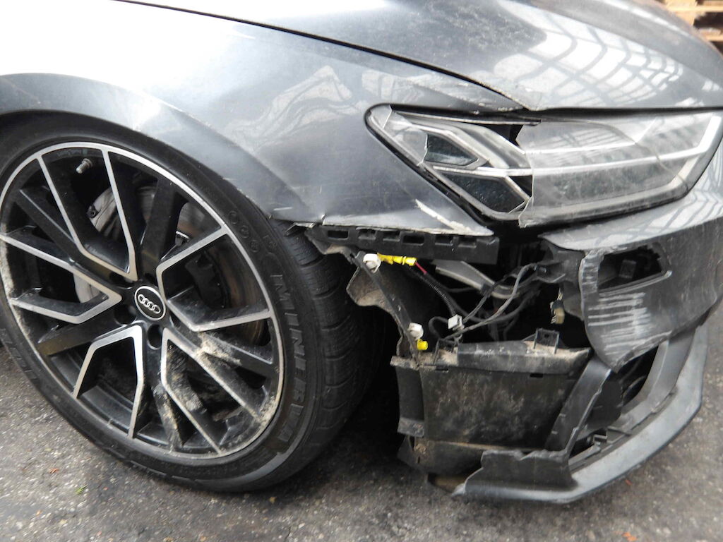 Rechte Seite beschädigt: Stossstange jvo. + hi.-,Scheinwerfer-,Motorhaube-,Kotflügel-,beide Türen-,B-Säule-,Seitenwand Schiefstand Rad VR - Vorderachse und Felge VR beschädigt Motor Getriebe Vorderachse Hinterachse Airbags ausgelöst: 0 unbekannt ( Abfallcode 16.01.04ak )