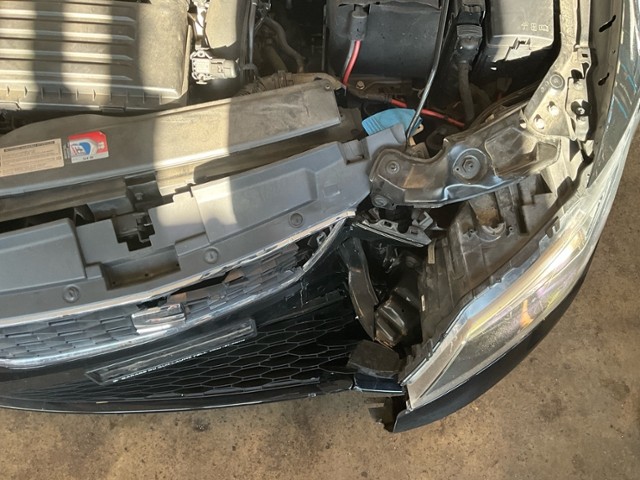 Front eingedrückt. Frontblech/Maskenblech eingedrückt. Längsträger vorne links gestaucht.