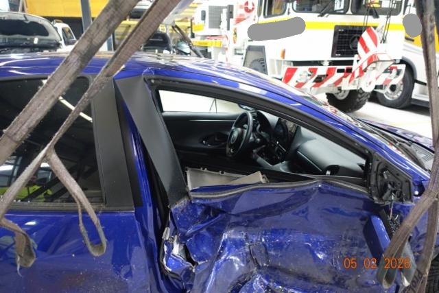 Rechte Seite beschädigt. Anstoss rechts im Bereich der A-Säule. Anstoss rechts im Bereich der B-Säule. Schweller rechts ist eingedrückt. Tür vorne rechts ist eingedrückt. Tür hinten rechts ist eingedrückt.