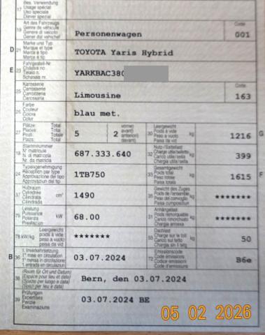 Airbag Fahrer und Beifahrerseite Elektrische Fensterheber vorne Aussenspiegel elektrisch verstellbar und heizbar Seitenairbag Fahrer und Beifahrerseite Zentralverriegelung mit Fernbedienung Mittelarmlehne vorne Kopfairbag vorne und hinten Audiofernbedienung am Lenkrad Bodenteppiche ABS und EBV Elektr. Bremskraftverteilung inkl. BA Stabilitätskontrolle VSC + Traktionskontrolle TRC Rückfahrkamera Adaptiver Tempomat ACC Einzeln abklappbare Rücksitzlehnen 60/40 Stahlfelgen 15" HSA Berganfahrassistent Reifendruck-Überwachungsanzeige Fernlichtassistent Klimaautomatik Spurhalteassistent LKA Pre Crash System PCS LED Tagfahrlicht LED Rückleuchten Start + Stopp Automatik Details siehe gültige Preisliste des Importeurs Keine Gewähr auf die Angaben der Serienausstattungen Verkehrsschild-Erkennungssystem Connect Apple Car Play/ Android Auto Garantie 10 Jahre/ 185'000 km Toyota Touch 3/ MP3/ Bluetooth/ DAB+