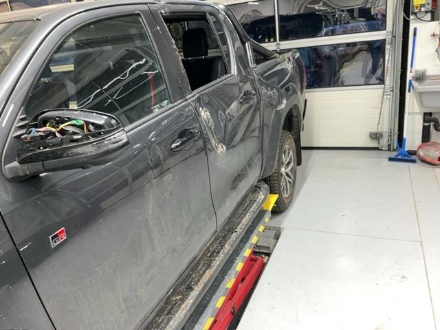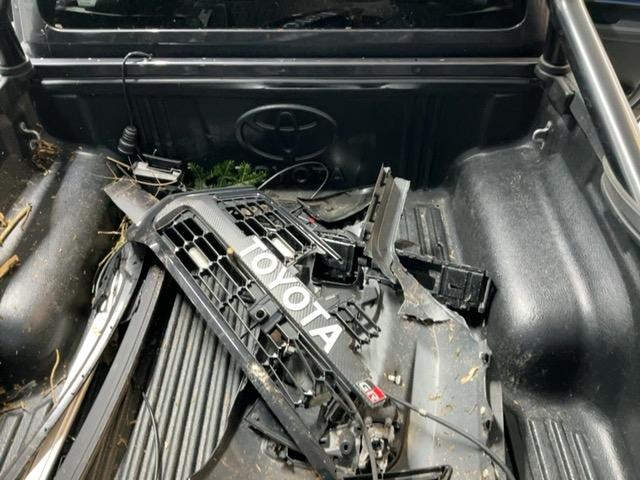 ARRIERE GAUCHE: aile, extention aile, peinture arceau et feux. / AVANT: pare-brise, chassis, passage de roue gauche, capot, pare-chocs, calandre, tôles frontales, capot, grilles, phares, porte avant gauche, vitre porte avant gauche, ailes, rétroviseurs gauche et droit, toit latéral gauche, toit, montant B, radiateur, condenseur, ventilateur, contrôler suspension etc...... / Dommages préexistants: coffre rayé. Porte arrière droit enfoncée. carrosserie et intérieur sale. Divers coups et rayures.